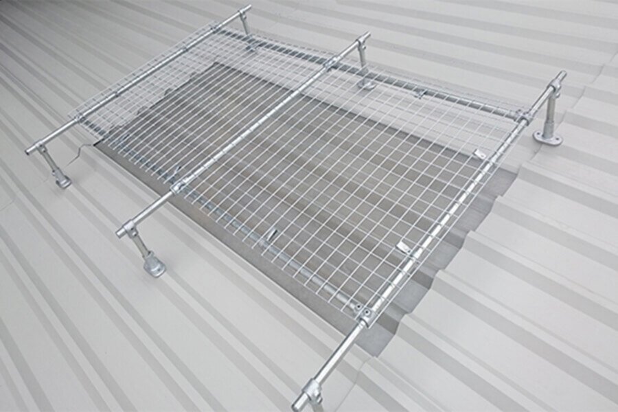 - A mesh panel is mounted on the frame to prevent falls through the rooflight.